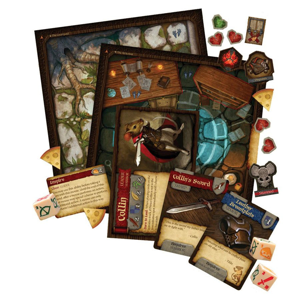 In Mice and Mystics players take on the roles of those still loyal to the king but to escape the clutches of Vanestra, they have been turned into mic. Play as cunning field mice who must race through a castle now twenty times larger than before. The castle would be a dangerous place with Vanestras minions in control, but now countless other terrors also await heroes who are but the size of figs. Play as nimble Prince Colin and fence your way past your foes, or try Nez Bellows, the burly smith. Confound your foes as the wizened old mouse Maginos, or protect your companions as Tilda, the castles former healer. Every player will have a vital role in the quest to warn the king, and it will take careful planning to find Vanestras weakness and defeat her. Mice and Mystics is a cooperative adventure game in which the players work together to save an imperiled kingdom.