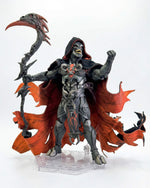 Obsidius, formerly Technis Kor-Se-Vak, an agent of the SKA clan, was presumed dead after discovering an Aeon repository in a treacherous region called the 'Zombie Nebula'. These hidden chambers, believed to contain ancient Aeon artifacts, turned out to be an arsenal where the Aeon locked away dangerous alien weapons. Among them was the Dread Scythe, crafted from the ebony bones of a dragon-like creature, called a Voidreaver. Upon touching it, Kor fell under its influence, becoming bonded with the scythe. It granted him chitinous obsidian armor and the ability to manipulate space-time, but only by consuming the souls of his victims.