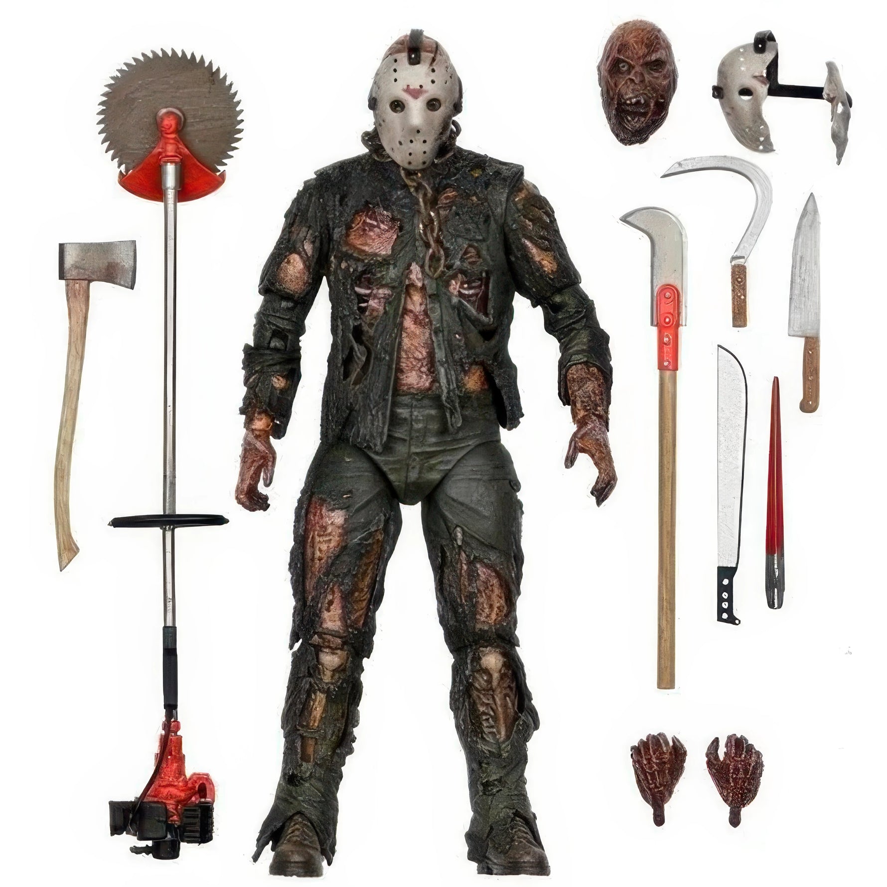 NECA presents the definitive collector's version of Jason Voorhees, from Friday the 13th Part 7: New Blood! With over 25 points of articulation, the Friday the 13th Part 7: New Blood Ultimate Jason Voorhees 7-Inch Scale Action Figure comes with an additional head without mask and tons of accessories, including an chain, axe, machete, ice pick, knife, long scythe, sickle, and trimmers. Comes in a display-friendly deluxe window box with opening flap.