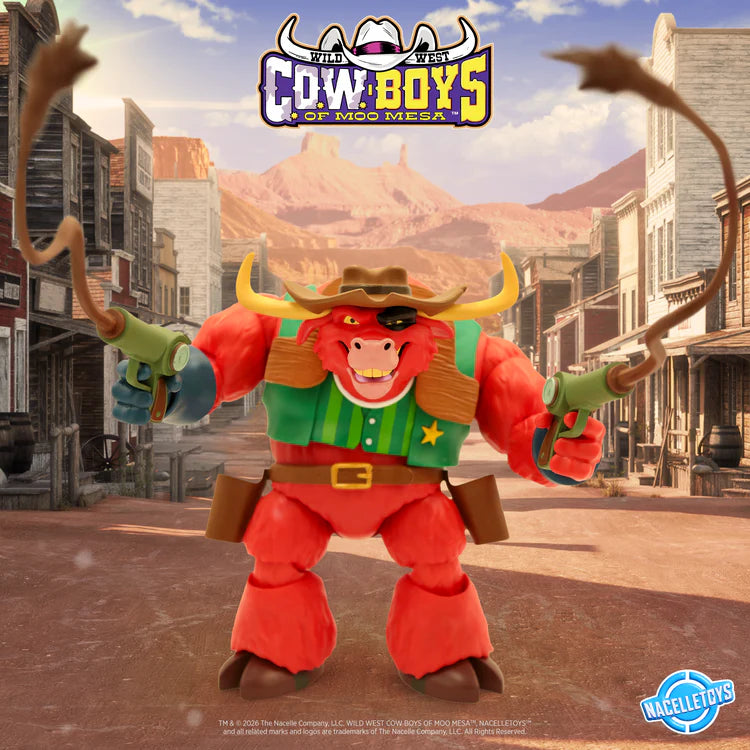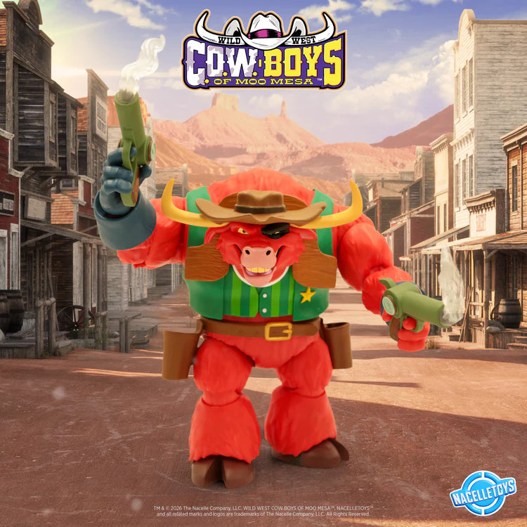 Be careful now, there’s one downright evil heap of sirloin lurkin’ around - the menacing Sheriff Terrorbull! He is the MOOst intimidating, greedy, and mean-spirited bull you’ll find around Cow Town, and he only takes orders from the one cow who put him where he is – the corrupt Mayor Oscar Bulloney. This 7-inch scaled action figure has an uncanny resemblance to the outlaw known as The Masked Bull and comes with everything you’d expect a havoc-causing, low-life scoundrel to ride around with. With him in your collection, you’ll be darn sure to cause chaos to his nemesis Marshal Moo Montana.