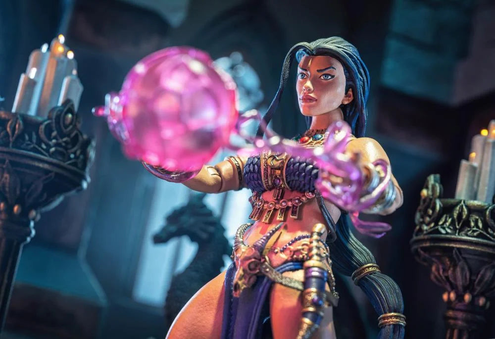 In this next project comes Aksana the Inquisitor, created by actor, producer, writer, and fantasy game designer Joe Manganiello. Aksana the Inquisitor includes 4 sets of swappable hands plus 2 heads - one with her crown and one without. Both heads also include "bendy" ponytails for posing! Aksana also comes with a magic staff, dagger, and sheath, 4 spell effects, and premium wired soft goods pieces.