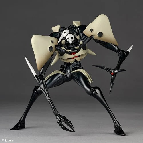 Recreate the intense clash in Tokyo-3 with the Evangelion: 1.0 You Are (Not) Alone! Fourth Angel Revoltech Amazing Yamaguchi Action Figure! Under the dynamic sculpting of Yamaguchi Katsuhisa, this otherworldly foe is brought to life with full articulation and a uniquely proportioned body that perfectly captures its eerie movements and monstrous form. Whether it's its menacing advance or a twisted, lunging attack, you can pose the Angel in all its fearsome glory. The figure includes 2x interchangeable head parts-one from its first appearance and one post-regeneration-alongside a wide array of optional accessories inspired by the iconic battle with Eva Unit-01. Use the included effect parts like the energy spear extension from its elbow or the massive claw grasping Eva Unit-01's head to recreate the unforgettable scenes from the movie. A must-have for Evangelion fans! This figure measures approximately 6 3/4-inches tall.