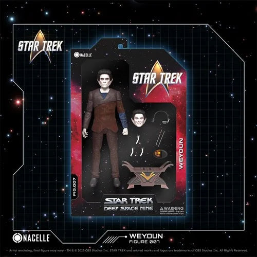 Add a touch of Star Trek: Deep Space Nine intrigue and manipulation to your collection with this Weyoun action figure. As the cunning and loyal Vorta representative of the Dominion, Weyoun is both a master diplomat and a chilling enforcer. This 1/12 scale, fully articulated figure captures his distinct appearance and calculating nature, with intricate details that make him a standout in any Star Trek collection. The figure comes with an impressive range of accessories, including his iconic headband with eye piece, several bottles of Ketracel White (the substance essential to the Vorta), and a box that holds more of the precious drug. For a lighter, more human side of Weyoun, the figure also includes a pair of chopsticks.